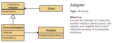 인터페이스가 호환되지 않아 쓸 수 없었던 클래스들을 같이 사용 할 수 있게 해 줍니다.